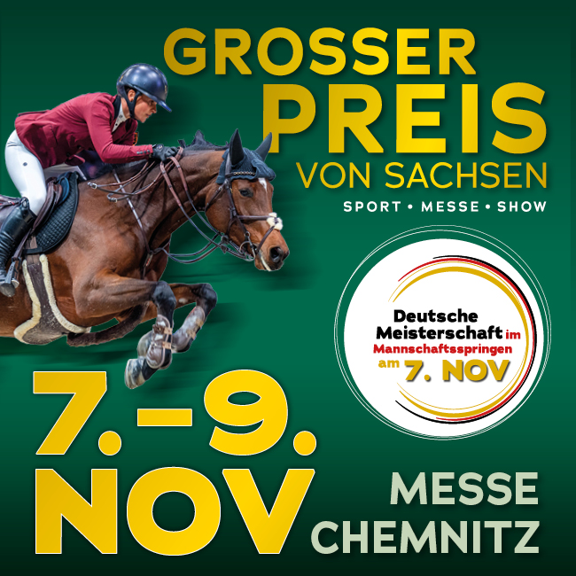 Zum zweiten Mal werden die Deutschen Meisterschaften der Landesverbände beim Turnier in der Messe Chemnitz ausgetragen | Der Vorverkauf für das Hallenreitsport-Event vom 7. bis 9. November 2025 läuft. Auf sportliche und abwechslungsreiche... Weiterlesen