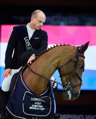 Noch gefährlicher für den Niederländer an der Spitze wurde es durch den vorletzten Starter: Philipp Schulze Topphoff ließ seine Carla NRW (v. Comme il Faut) förmlich durch den verkürzten Parcours fliegen, nahm die engsten Wendungen und war am Ende rund eineinhalb Sekunden schneller. Aber am Schlussoxer sprang seine zwölfjährige Partnerin nicht ab, räumte die Stangen beiseite – und machten aus dem scheinbar sicheren ersten einen fünften Platz. Immerhin 12 Punkte im Weltcup-Ranking gab es zusätzlich zu den 19.200 Euro Preisgeld für Philipp Schulze Topphoff als bestem Deutschen an diesem Tag.