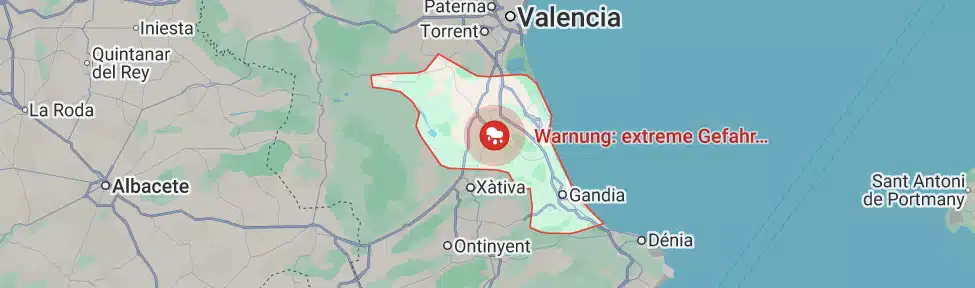 Für diesen Sonntag sind wegen Unwetter-Warnung alle Springen komplett abgesagt. Nachdem am Samstag noch planmäßig alle Grand Prix über die Bühne gingen, wobei Sergio Alvarez Moya im CSI3*für einen spanischen Heimsieg auf Be Blue sorgte, kam die schwarze Wolke in Form einer staatlichen Warnung für den Sonntag: „Treffen Sie Vorsichtsmaßnahmen, bleiben Sie wachsam und befolgen Sie die Anweisungen der Behörden. Informieren Sie sich regelmäßig über die aktuelle Wettervorhersage. Reisen Sie nur, wenn Ihre Reise unbedingt notwendig ist. Es kann zu extremen oder katastrophalen Schäden an Personen und Eigentum kommen.“ Und dazu die Karte des gefährdeten Gebietes mit Oliva mittendrin.