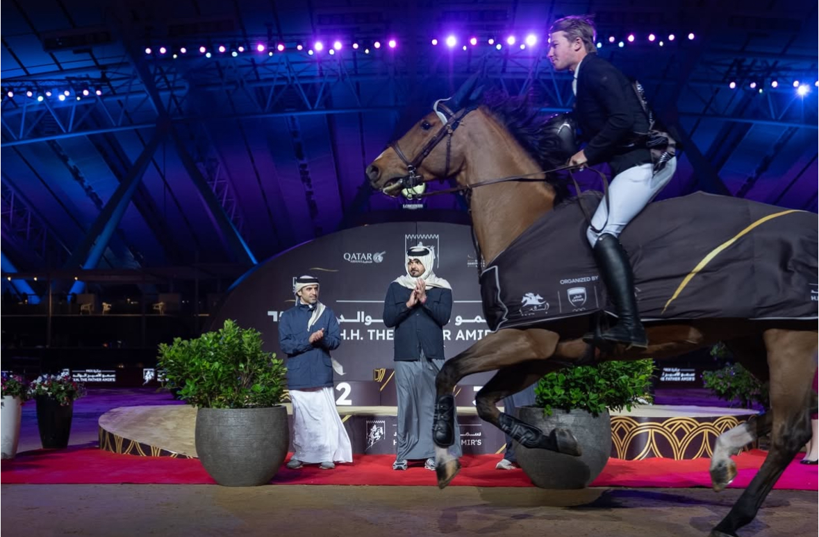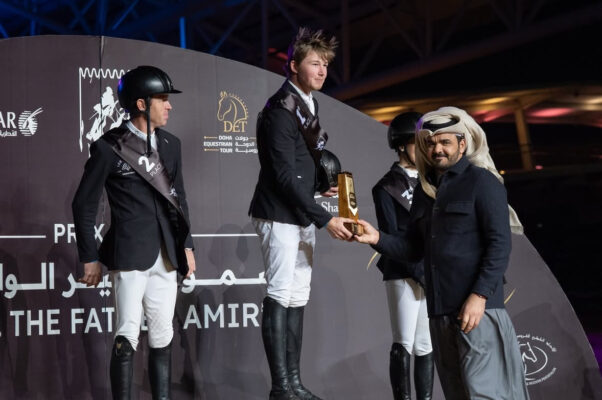 „Es ist einfach toll, so ins Neue Jahr zu starten“, freute sich Harry Charles nach seinem Sieg in Doha. Im Stechen des CSI4* Grand Prix über 1,55m hatte er mit fehlerfreien 38,20 Sekunden auf Casquo Blue (v. Chacco-Blue) eine Zeit vorgelegt, an der sich als Letzter der fünf Starter auch Scott Brash die Zähne ausbiss. Auf Hello Folie (v. Luidam) lag er bei der Zwischenzeit sogar noch vorne, aber am Ende zeigte die Uhr 38,48 Sekunden, als er über die Ziellinie galoppierte. Platz drei ging mit 40,14 Sekunden an die Thailänderin Janakabhorn Karunayadhaj auf Maxwin Kinmar Bespoke (v. O-Piloth).