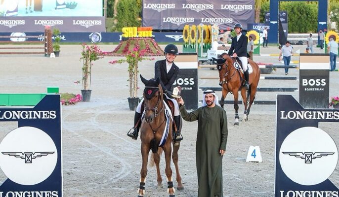 Es war eine gute Einstimmung auf den Nationenpreis am Sonntag mit Top-Platzierungen für die deutschen Teamreiter in der CSIO4* Longines Challenge in Sharjah. Mit dem zehnjährigen Sheeran WL (v. Codex One) sprang Christian Ahlmann auf Platz zwei hinter Constant van Paesschen mit Diaz du Thot (v. Ready Boy des Forets). Gleich dahinter, auf Platz drei, holte sich Sophie Hinners mit Iron Dames Kaleni Jo (v. Kannan) ihr erstes Preisgeld, auf Rang zehn mit Event de l’Heribus (v. Emir de VY) gab es dann für sie noch einen Nachschlag. Fehlerfrei war sie mit beiden Pferden.