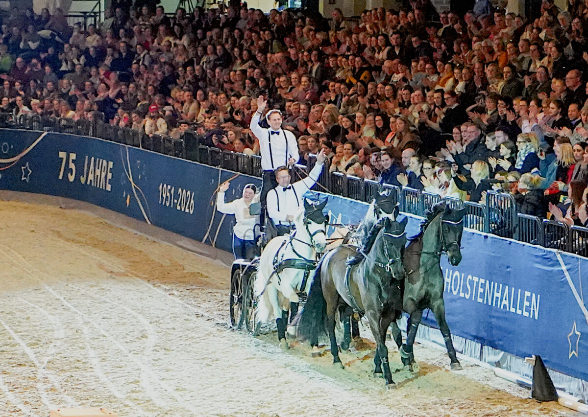 Ein Familienfest hat die VR Classics am Mittwochabend mit einem Show-Programm eröffnet – und da die Pferdefamilie in Schleswig-Holstein traditionell groß ist und es schließlich um den 75. Geburtstag des Traditionsturniers ging, war die Holstenhalle natürlich vollbesetzt. Was 1951 als regionales Reit- und Fahrturnier in einer vom Zigarren- und Pfeifenrauch vernebelten Halle begann, wo die Reiter deshalb manchmal kaum das andere Ende des Parcours sehen konnten, hat sich über die Jahrzehnte zu einem international hochkarätigen Event entwickelt, unter anderem als feste Station des Dressur-Weltcup. Inzwischen natürlich rauchfrei.