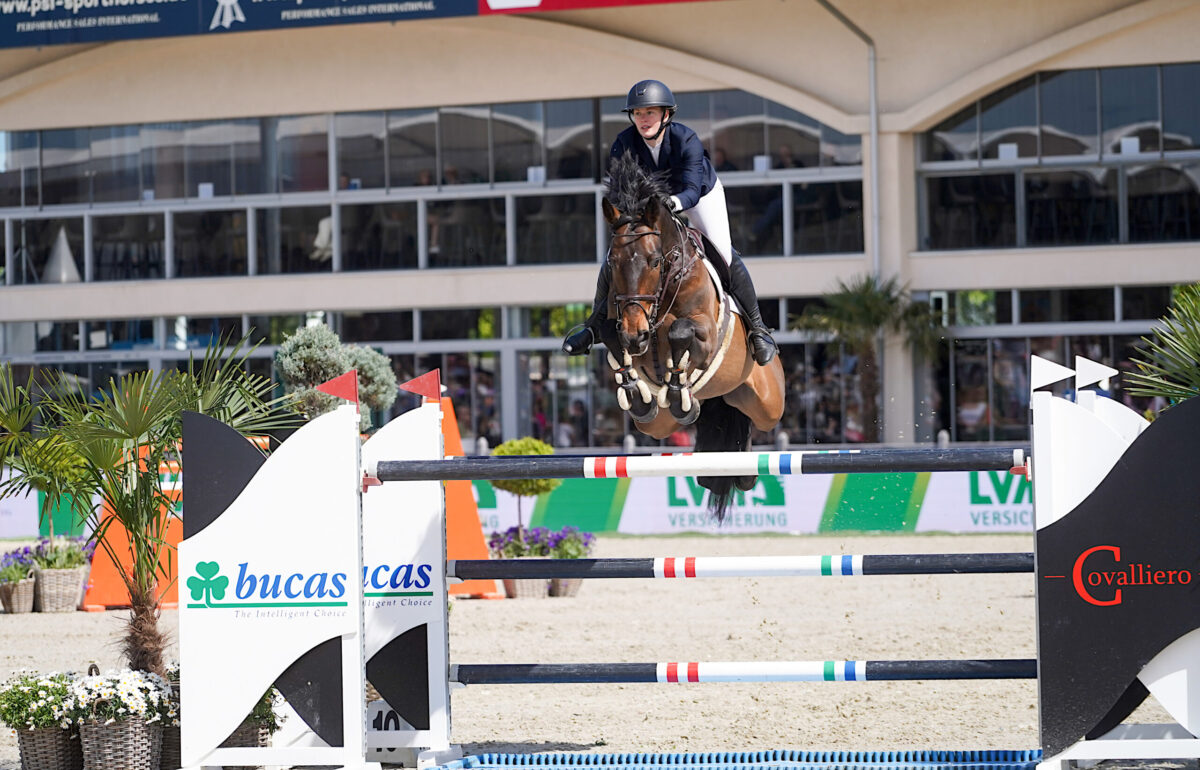 Clara Blau hat selber nicht damit gerechnet, weil sie nicht wusste, ob ihr Paul schon wieder fit genug ist nach seiner Kolik OP im letzten Sommer: Paul (v. Sunrise) war fit genug. Und wie. Im Stechen um den Sieg im U-25 Springpokal in Hagen galoppierten Clara Blau und ihr Herzenspferd mit einer Bestzeit von 44.85 Sekunden ins Ziel und sicherte sich so den Sieg plus ein begehrtes Ticket für das Finale bei der WM in Aachen in diesem Jahr. Platz zwei und ebenfalls ein Platz in Aachen holten Marie Flick und der Holsteiner Ciro (v. Conlander) mit einer Zeit von 45.28 Sekunden im Stechen. Der dritte Platz auf dem Ehrenwagen in Hagen ging an Sina Knoop im Sattel von Cayman K (v. Cristallo). Sie hatte mit 44.64 Sekunden tatsächlich die schnellste Zeit in den Parcours gezirkelt, kam aber mit zwei Abwürfen aus dem Stechen für das nur diese drei ihr Ticket gelöst hatten.