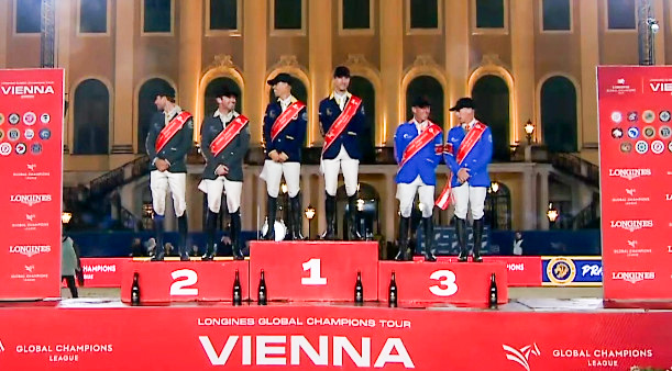 Pieter Devos, erst auf Jarina J (v. Cicero Z van Paemel) und in der zweiten Runde auf Primo DV (v. Vigo d’Arsouilles), und Fernando Martinez Sommer auf Lady van de Haarterhoeve (v. Casall) haben die Etappe der Longines Global Champions League in Wien mit dem Idealergebnis Null aus den beiden Runden souverän gewonnen vor Riesenbeck International und Valkenswaard United..