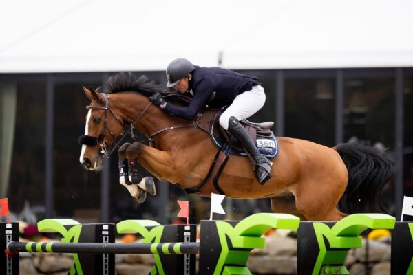 Richard Vogel und der erst neunjährige Komet (v. Kannan) verpassten das Stechen. Nach vier Abwürfen beendete die Nummer Fünf der Weltrangliste vorzeitig den Parcours. Gewonnen hat er trotzdem: In dem vorangegangenen CSI5* Springen über 1,45m sicherte sich Vogel den Sieg im Sattel des neunjährigen Holsteiners Con Quality (v. Chin Champ).