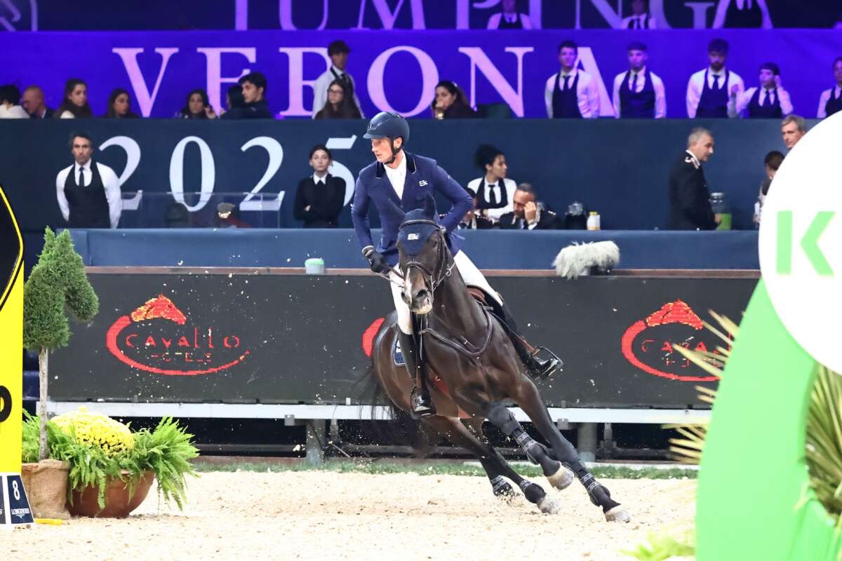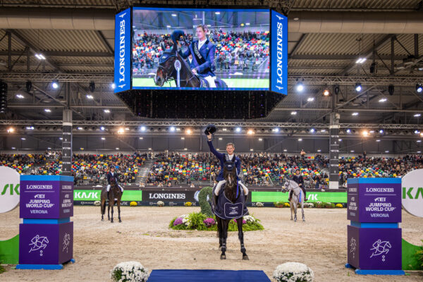 „Ich war mir erst nicht so sicher, ob ich die sieben Galoppsprünge zu der Kombination versuchen sollte, aber Otello hat mir schon gleich von Anfang an so ein gutes Gefühl gegeben, dass ich dachte, jetzt versuchst du es. Und es war gut, dass ich das versucht habe, weil ich wohl dort die nötige Zeit eingespart habe“, freute sich Daniel Deusser nach seinem Triumph. „Für uns hätte die Woche in Verona nicht besser laufen können. Otello hat schon den Qualifier am Freitag gewonnen und dann gewinnt er heute auch noch. Ich bin sehr stolz auf ihn. Es war meine erste Weltcup-Etappe der Saison, so kann es gerne weitergehen.“