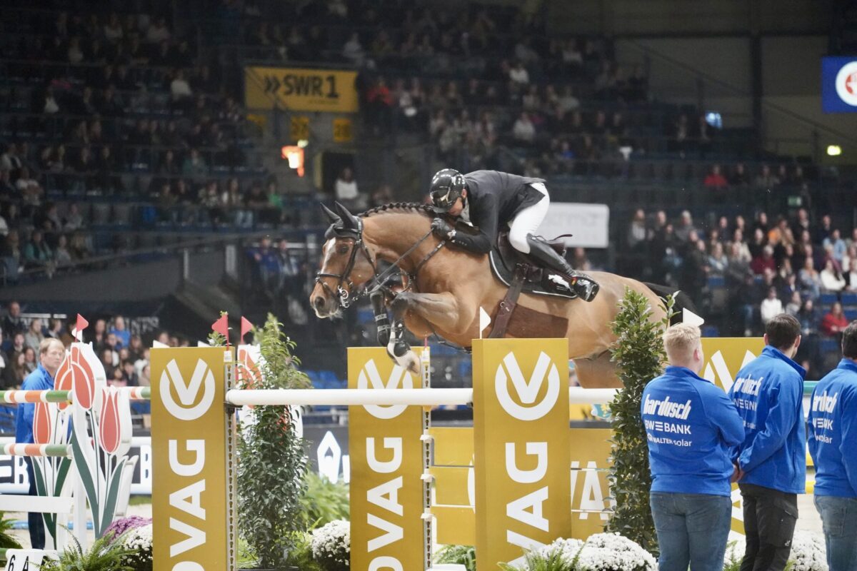 Ein rasend schneller Belgier hat Richard Vogel im CSI5* Speed-Hauptspringen über 1,50 in Stuttgart am Donnerstagabend den Sieg gemopst. Rik Hemeryck und sein Navarro van het Eelshof (v. Jappelloup vh Dauwhof) gaben derartig Gas im Parcours, dass die Konkurrenz chancenlos blieb. Nach nur 61.06 Sekunden war das Paar im Ziel. Das Nachsehen hatte Richard Vogel, der wie immer, ebenfalls auf Angriff ritt. Mit Phenyo van het Keysersbos (v. Corydon van T&L) war er mit einer Zeit von 61.39 Sekunden einen Hauch langsamer und wurde Zweiter. Platz drei sicherte sich Rodrigo Giesteira Almeida und Karonia.L (v. Harley) vor Peder Fredricson und SV Vroom de la Pomme Z (v. Vigo).