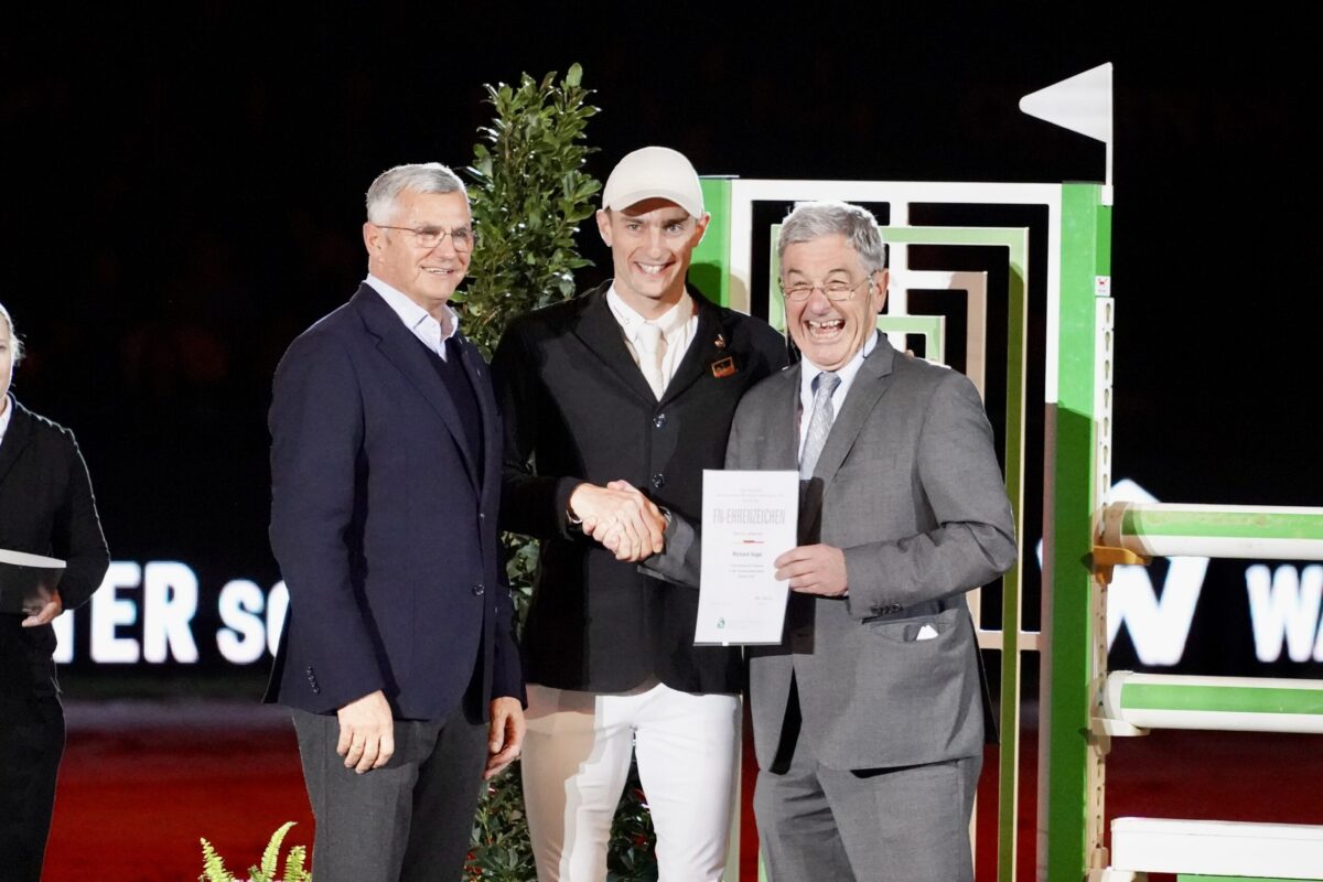 Im Rahmen der Stuttgart German Masters hat die Deutsche Reiterliche Vereinigung (FN) Richard Vogel ausgezeichnet. Für seine Leistung bei den Europameisterschaften 2025 im spanischen A Coruña verlieh Peter Hofmann, Vorsitzender des Springausschusses des Deutschen Olympiade-Komitees für Reiterei (DOKR), an Richard Vogel das FN-Ehrenzeichen in Gold mit Lorbeerkranz.