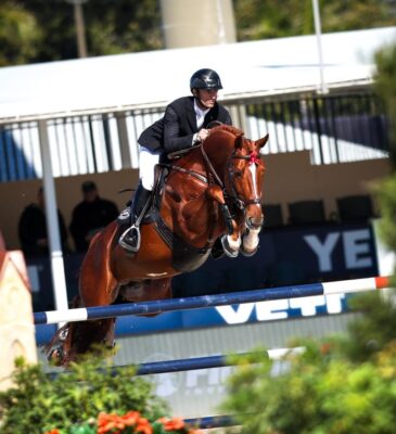 Vor zwei Jahren hat Sophie Hinners die Zügel von Iron Dames Abou-Chaker NRW aus Christopher Kläseners Händen übernommen, jetzt hat Richard Vogel den neunjährigen Alaba-Sohn mit nach Wellington genommen – und ist beim ersten 5*-Start mit ihm gleich Dritter im CSI5* Zeitspringen in Wellington geworden. Nach fehlerfreien 59,62 Sekunden waren die Beiden im Ziel. Noch etwas schneller in dem 62.000 Dollar-Springen über 1,50m waren nur Jordan Coyle auf King Kannan GP (v. Kannan) und Mark Bluman auf Phelina de Septon (v. Jenson van’t Meulenhof).