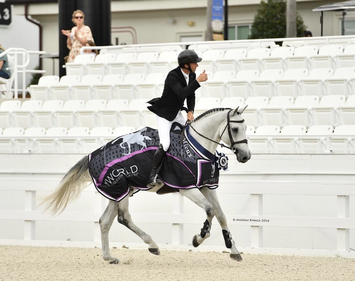 „Der Weg vom Fohlen zum international erfolgreichen Spitzensportler ist lang“, betont die in der sechsten Generation erfolgreiche Holsteiner Züchterfamilie Witt selbst. Aber gerade hat einer aus ihrer Zucht und noch in ihrem Besitz sich auf diesem Weg mit neun Jahren schon ein gutes Stück nach vorne gearbeitet: Cardentos, Schimmelhengst von Cardento x Quo Vados, hat im Stechen den 2* Grand Prix im World Equestrian Center in Ocala, der über 1,45m ging und mit 65.000 US-Dollar Preisgeld lockte, gewonnen. Europameister Richard Vogel hat ihm seinen Sattel aufgelegt und kam nach 32,44 Sekunden als schnellster Doppelnuller auf seinem Holsteiner Partner mit dem ersten gemeinam Sieg ins Ziel – acht Hundertstel schneller als sein schärfster Konkurrent, Vaclav Stanek auf Langley (v. Landsdowne). Der Dritte, Mark Bluman, brauchte mit Hastella (v. Quamikase des Forets) noch einmal zwei Hundertstel länger.