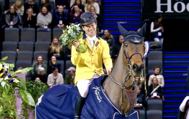 Er war in den vergangenen Wochen mehrfach vorne dabei, wenn es um den Sieg ging. Vor einer Woche in Göteborg zum Beispiel war Eiken Sato mit Chadellano JRA (v. Chacco-Blue) und Campai (v. Chacco-Blue) Dritter, Vierter, Fünfter. Aber an diesem Samstagabend, da hat er sich mit Chadellano JRA in Helsinki den Sieg geholt. Dabei hatte im Stechen Kevin Staut auf Kannonqulan (v. Kannan) vor ihm mit fehlerfreien 33,59 Sekunden eine wahre Parforcerunde vorgelegt, die nicht mehr unterbietbar schien. Doch Eiken Sato legte los wie die Feuerwehr, nahm die engst möglichen Wendungen auf diesem technisch anspruchsvollen verkürzten Parcours und war nach 32,89 Sekunden im Ziel. Das war der Sieg im CSI5* Helsinki Grand Prix, einem 1,55m Springen – und das Lächeln wollte nicht mehr aus seinem Gesicht weichen.